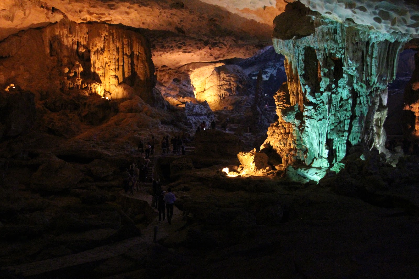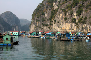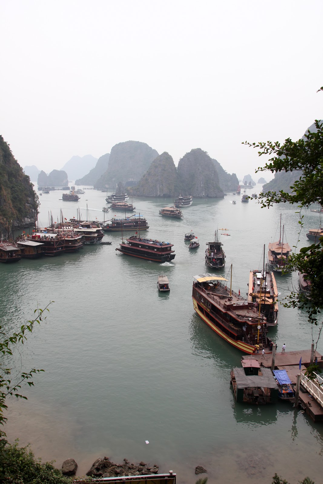 As with most tourist attractions in any given country Ha Long Bay was busy. Very busy. Made to look even more busy by the fact that to get to Ha Long Bay to glimpse and marvel at the famous limestone rocks everyone is funnelled through the same port all queuing up for the same pier of which around 500 boats are all waiting their turn to pick up the latest shipment of freshly delivered tourists. Suffice to say the majesty was somewhat lacking as we departed. Once onboard everything changed. The nautical traffic dispersed and we glided through the lime green waters of the South China Sea sailing past entire communities of fishing villages and weaving in and out of the huge limestone formations piercing the tranquil jade ocean. Ironically it was moments like these that made our three day excursion what it was and not the advertised hotels/(rabid) monkey island/enigmatic cave tours we sampled en route.