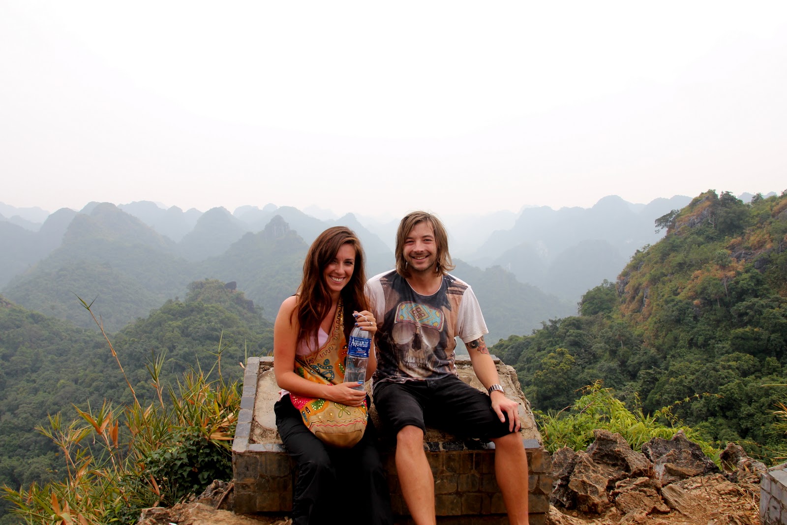 After Ha Long Bay The Politz-Damergi Honeymoon Tour made a pit stop on Cat Ba Island where we took part in a bit of trekking. This was a first for both Sara and I and we were very much looking forward to it. I’m not entirely sure why, maybe it’s a coming-of-age thing? I am pretty sure it’s the same kind of excitement I get from purchasing a new camera rucksack which also has a little compartment for my net book. Those kind of things never did much for me until recent years and the idea of trekking never elicited any emotion before, so why now? – I fear we are becoming ‘outdoorsy people’. You know the type? They wear shoes for comfort and own more than one waterproof jacket. Anyway, being innocent little trekking virgins meant we were ill-equipped for such activities and so what should have been a relatively easy hour hike up and hour hike down the Cat Ba National Park peaks was made into a bit of a drama caused mainly by the same camera rucksack with little compartment for my net book which I insisted on carrying for our mini-mountain marathon. With only some tatty old Topman plimsolls for traction we eventually made it the summit gasping for air and relieved. A job well done.