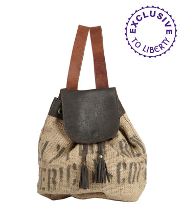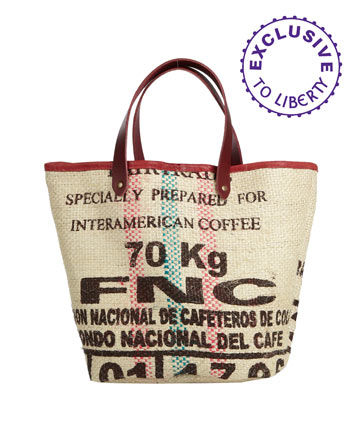 With this in mind, I should probably learn from the best – step in ‘Lost Property of London’. Using ‘abandoned fabrics’, LPOL’s up-cycling approach means they create not only unique and stylish products, but eco-friendly ones as well. Check out these bags made from coffee bean sacks (images from Liberty).