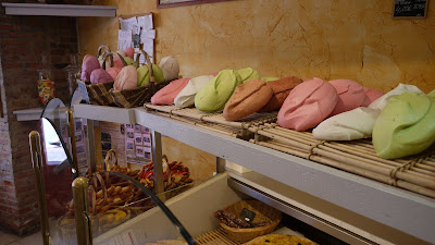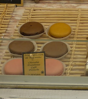 OK, so the last few days, we’ve been on location in the city and there just happen to be three pâtisseries (bakeries) around the corner. I’ve been sneaking away and trying the sweets and oh la la… I’m in love! Today, I tried the famous colorful macarons. And well, I’d have to disagree with Jamie Schler’s romantic and supremely positive article in the Huffington Post. But nonetheless it was fun to try the very French macarons. Colorful fluffy meringue filled with sweetness. I looked in the case filled with éclairs, pains au lait, and fruit tartes, and there they were: the Easter egg colored macarons.