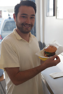 While I waited, I chatted up the man next to me. Turns out his name is Jeff Berger. As we were talking about his favorite SF burger (Corner Store), another fellow walked up who had overheard us. His name – Brian Berger. I know he was telling the truth, his truck for Berger Design Build, was parked right outside.