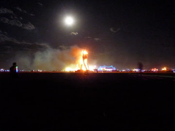 MUCH of the art out in the Playa was burned on Thursday night. As in, 30 or 40 sculptures all at once. I saw the glow and smoke, but that’s when I was trying to honor my DJ offer from the slave auction.