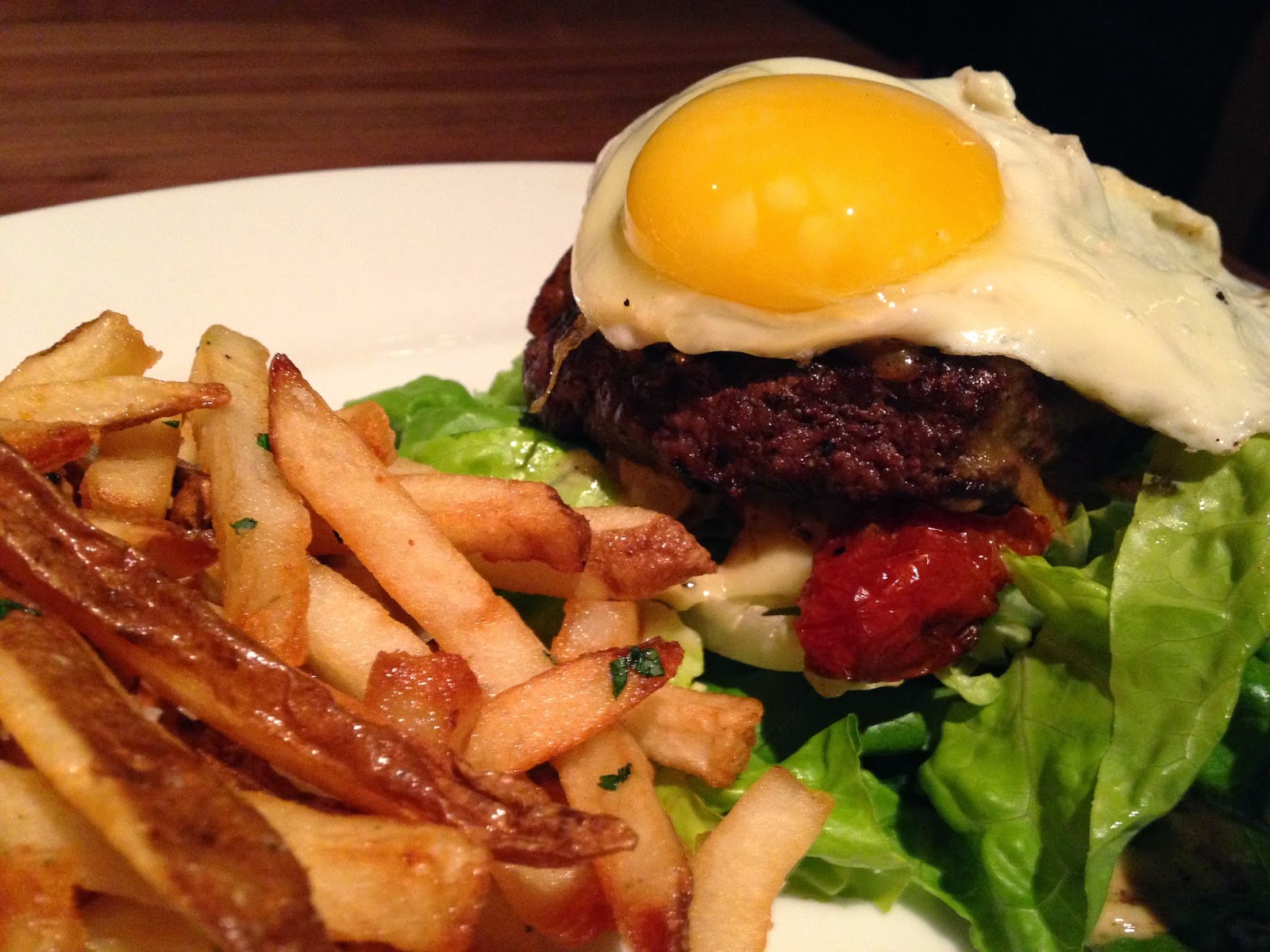 It was fabulous. The meat was salty and juicy. Very flavorful. The roasted tomato added a nice counter-note to the garlic aioli. The avocado was more like guacamole in consistency and could have been left off. The sunnyside-up egg was a great topper. The bibb lettuce cradled the whole thing next to some excellent fresh-cut fries.