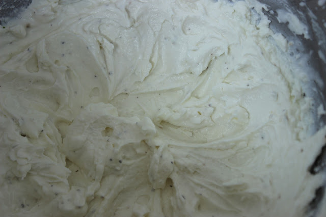 While the prosciutto is cooling, place four ounces of room temperature goat cheese in a stand mixer (it is very important that the goat cheese is at room temp). Add the juice of one half of a lemon and one quarter tsp freshly ground black pepper to the goat cheese. Using the whisk attachment, whip the cheese on medium speed until it becomes lighter and a bit airy, for about five minutes.