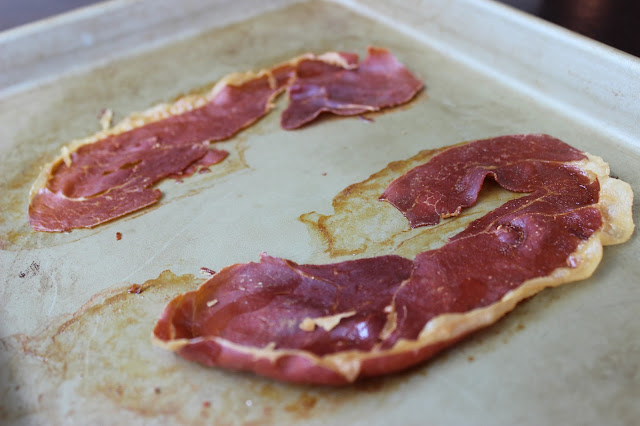 Crispy prosciutto is one of my favorite textural toppings. A fancier version of bacon-bits, they couldn’t be easier to create. Pre-heat your oven to 400 degrees and lay out two pieces of thinly-sliced prosciutto on a sheet tray and roast for 10-12 minutes until crisp. Remove from the oven and set aside to cool.