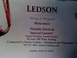 In other birthday happenings, this past weekend it was my friend Natalie’s birthday and she invited us all to go wine tasting at the winery where she’s a member. It was fabulous and I totally recommend it, hence talking about it here! (That’s what travel blogs are for, right?!) The winery is Ledson in Sonoma. A big castle-y type place with fountains and turrets and whatnot. It was a beautiful day and we had our own personal wine tasting dude (Kelsey) and special menu just for Natalie. Kelsey said weird stuff about how wine was made of crushed Smurfs and described everything as being “B.I.G.”, but it was entertaining nonetheless and he did tell us good stories about some celebrities who’ve been up there. Harry Connick Jr. showed up with his mistress once, apparently. Ooh. La. La.