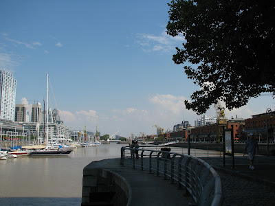 Our first stop was to buy some tickets on the ferry over to Colonia in Uruguay for the next week. The ferry was located, naturally, at Buenos Aires’ port, the historic and renovated Puerto Madero. Now largely a port dedicated to tourism and yachting aficionados, its canal is bordered on one side by the red brick storehouses of the area’s original days as a commercial hub. Those buildings have now been transformed into one high-end, high-priced restaurant after another.