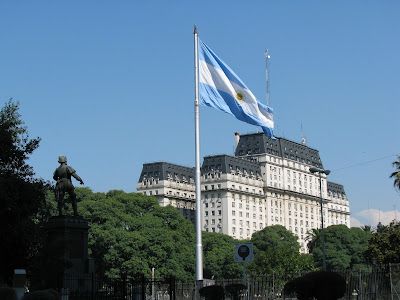 Apparently the other people were there to do some filming and had special permission to be there. Being another public space in front of another building where important political decisions are made, the Plaza del Congreso is as much a gravitational point for protests as the Plaza de Mayo, and this monument has been hit with a lot of spray paint over the years. The best way to keep it clean, apparently, is to keep people away from it altogether. But we were clearly not out to cause any trouble, and so the security guard kindly let me snap a picture from up there before letting us out and closing the gate behind us.