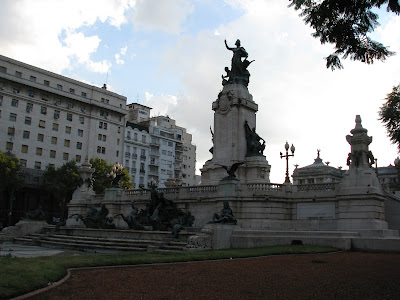By the time we had finished eating and made it to the other end of the Avenida de Mayo where it opens up into the Plaza del Congreso, it was starting to get late. There was just enough light to get a good look at the striking architecture of the Congress building and the large monument in front of it.