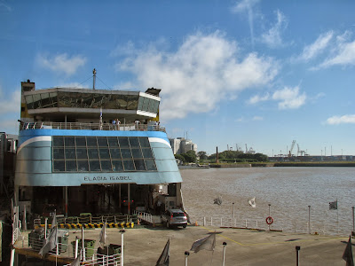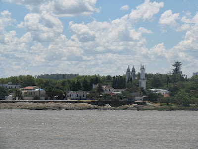 But we’d better keep the story moving forward. After a week in Buenos Aires, we boarded a large ferry boat and headed across the estuary separating Argentina from Uruguay. It’s famously called the Río de la Plata, or as it is sometimes translated into English, the River Plate. But let’s be realistic, it’s really more estuary than river. As we headed out onto the water, we were granted a nice view of the city we were leaving behind.
