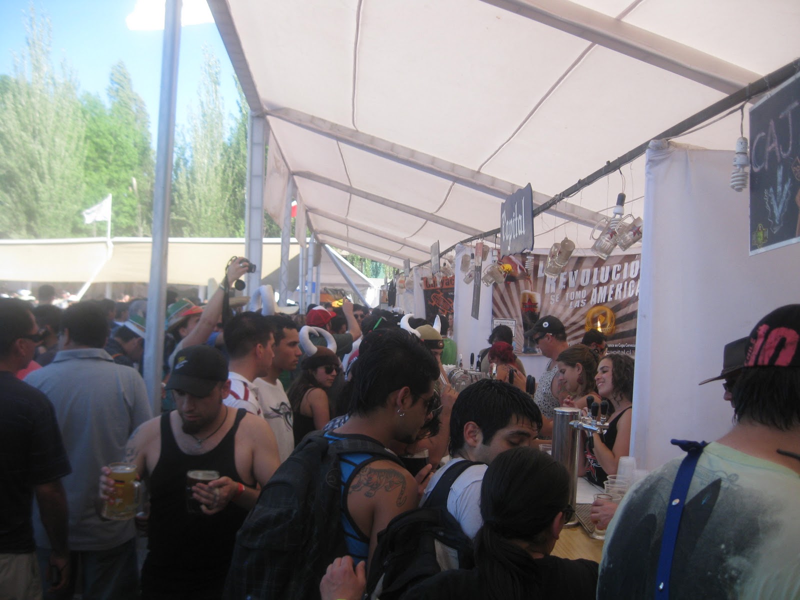 But then the path opened up into a wide, dusty field encircled completely by beer vendors. Literally, dozens of breweries. And at that hour, right around lunchtime, there weren’t so many people at all. So we went straight up to one of the first breweries that caught our attention and made a purchase. Dark, delicious and cold beer. Not your typical commercial pilsener; that day, there would be none of that. No. Nothing less than microbrew, at its flavorful finest. We split up, some of us dedicated to enjoying our first pints in the shade, and the others striking out at once, intrepidly in search of the next cupful.