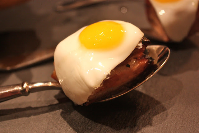 Chef Colin’s menu was decadent and artful, each item meant to be eaten in one or two bite-fulls, a variety of handheld presentations blanketing the table. My most boisterous ‘OH MY GOSH THIS IS SO GOOD’ moment came courtesy of the sorghum and bourbon glazed Marksbury Fram pork belly. This succulent, slightly sweet, nosh was topped with a perfectly fried quail’s egg, the yolk runny and rich. The deviled eggs with Maggie’s cayenne pepper were a highlight as well, providing everything you want out of a deviled egg, including a light welcome kick on the tongue, courtesy of the heat from the cayenne. We were spoiled on this evening and savored every last bite!