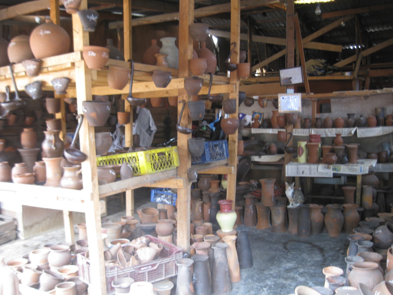 While some of the shops had attractively designed showrooms, the majority were like this one, little more than an open warehouse. Walking around a store like this, you had to assume that in the next room over the next round of pottery was being molded and fired by members of the same family who was sitting casually in the storeroom with you.