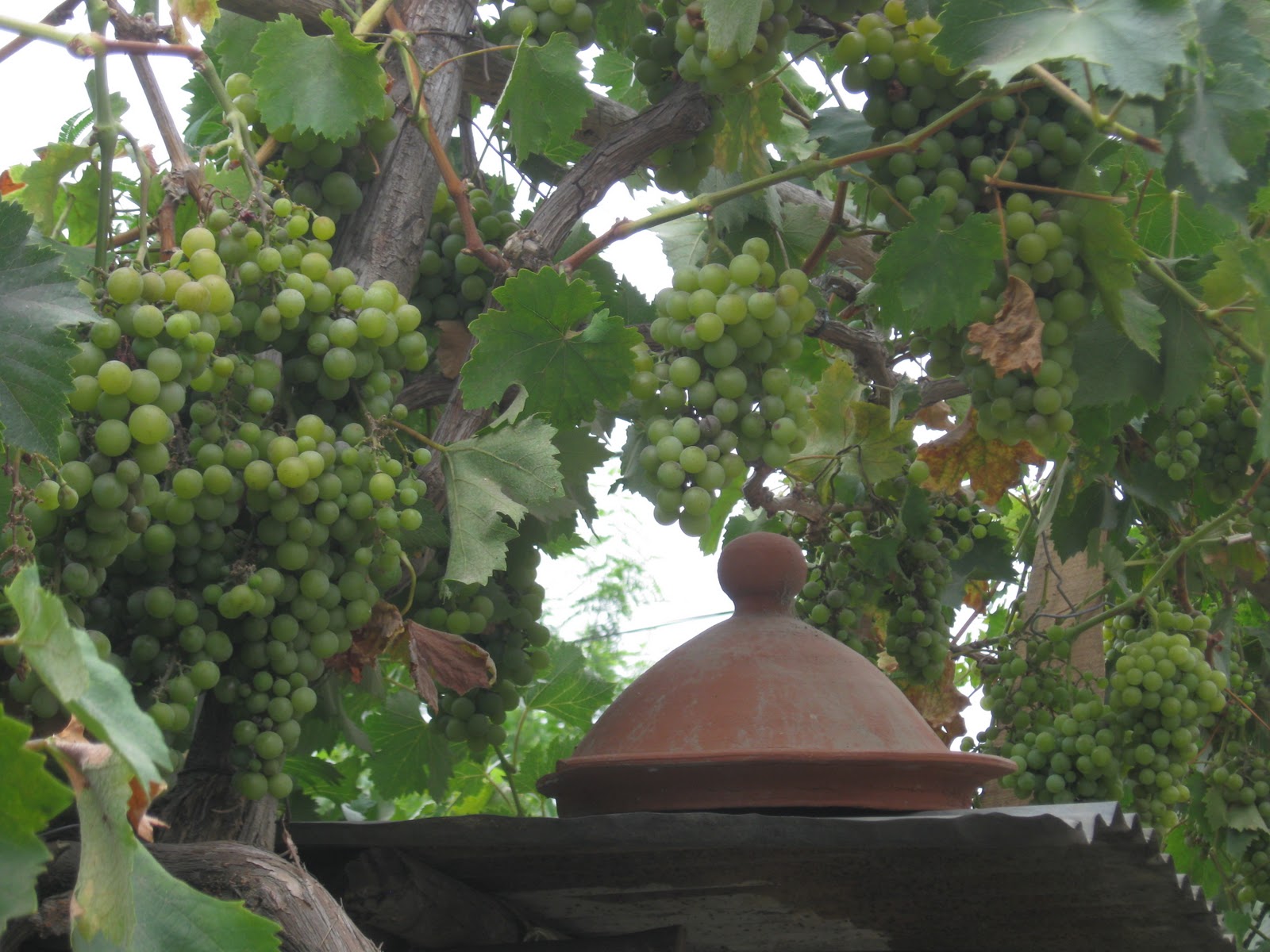 There aren’t many destinations in central Chile lacking the ubiquitous grapevine, whether it is laid out in countless rows in a commercial vineyard, or spreading along a trellis in someone’s backyard. Nearly all the homes in Pomaire seemed to be graced with vines of this latter ilk, and since we found ourselves there in the late summer of mid-February, the grapes were getting plump and ripe, and looking mighty tasty.