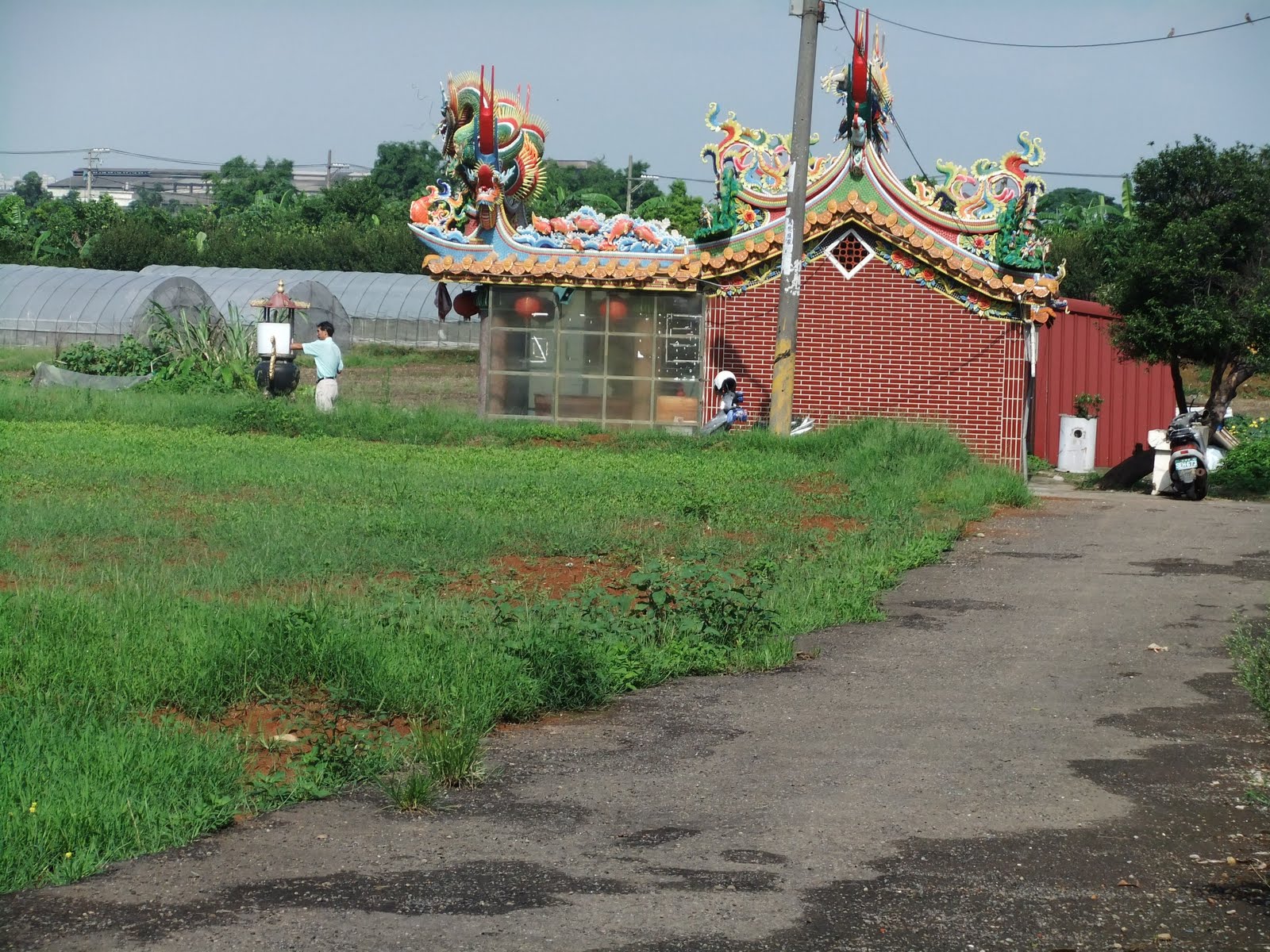 The one I most recently discovered, I found as I rode through the rice fields. I love rice fields, I like to ride through them and look at the rice. I usually do this in the early morning, when the birds are feeding there. This particular morning I was deep into the cultivated fields when I saw a couple of tombs. They were family tombs, built on the family’s fields so the family could properly care for them. Behind the tombs was the family’s personal temple. They built the temple as a way to honor their ancestors buried there. Incense from early morning worship was still burning.