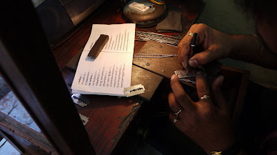 This trip I am making a lot custom orders and a friend of mine gave me a gold and diamond ring. She asked if we could melt the gold and use it in her piece and she wanted to give the diamond to Kumar as a gift.