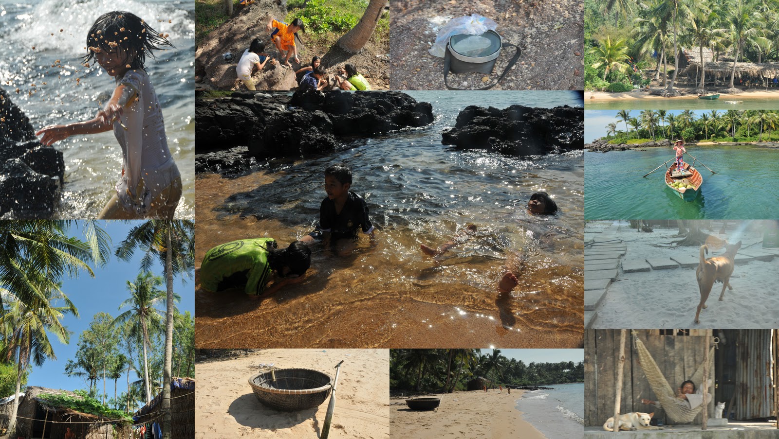 Following the sand coastline towards a rocky cropping I saw children playing on a large rock. They were smashing small snails with stones and eating them once they freed the snails from their casings. They giggled and offered me a few and upon my reluctance; they laughed even louder. A few children were searching beneath the water for snails and then handing them to to a friend who collected the lot. I could not help but notice that a dive mask used by the kids was entirely home made.