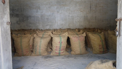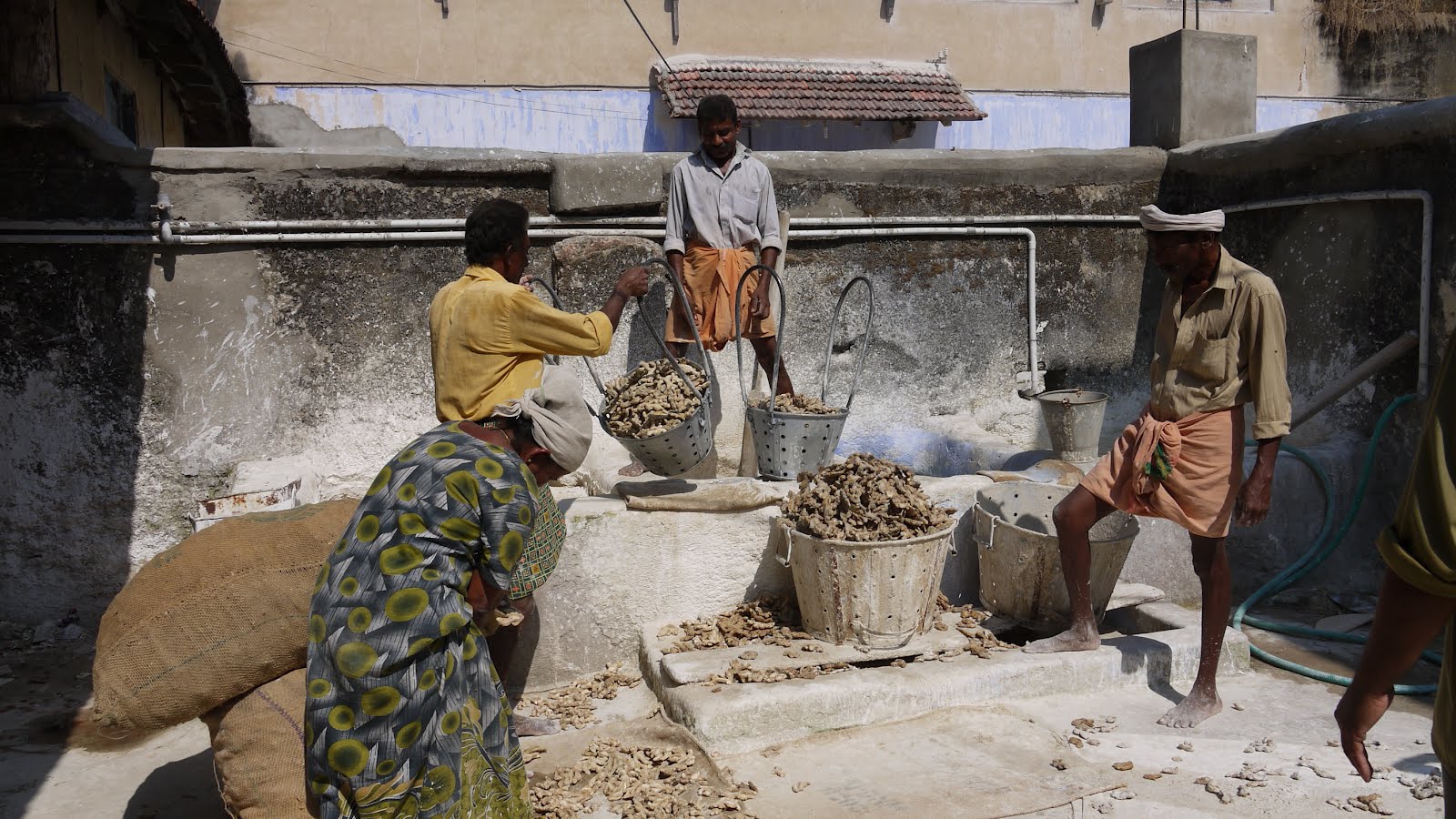 Here there are dipping the ginger in lime before they lay it out to dry in the sun, then the ginger is packaged and ready for export.