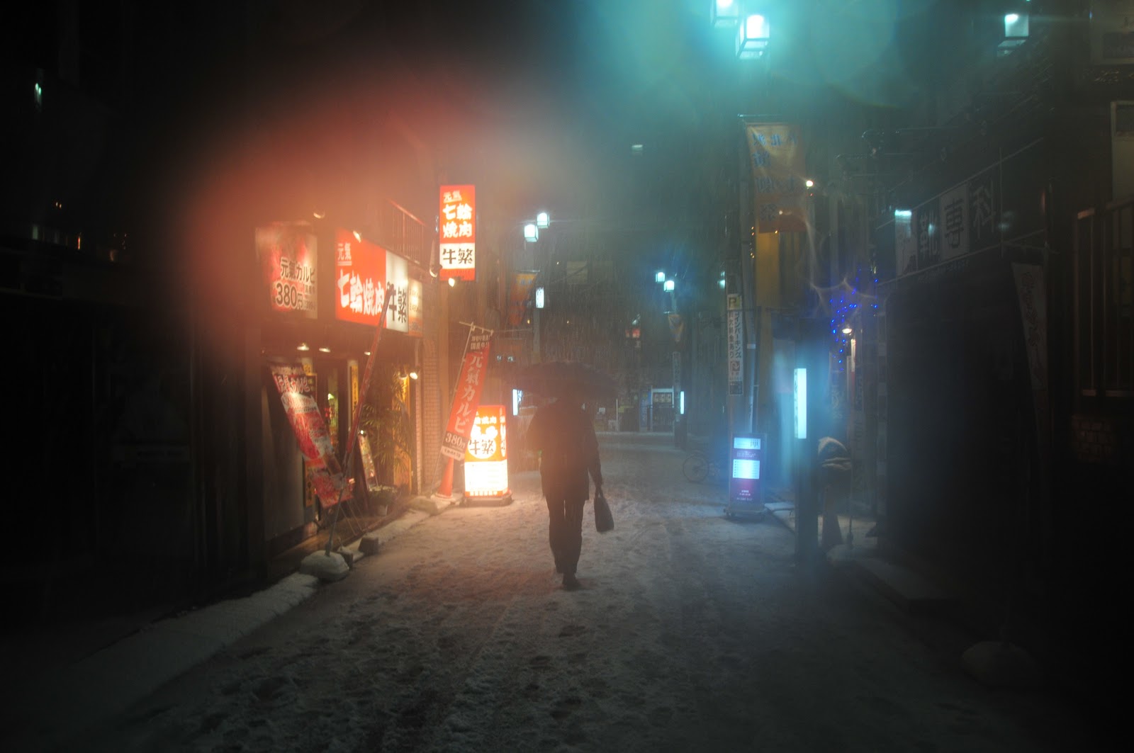 Last, night it snowed here in my Tokyo neighborhood Shimokitazawa. Went out at 12 AM to shoot. It was nice having the place to myself.. Shimikitazawa is a special neighborhood where the streets are less gridded and they wander through rustic theaters, cafes, bars, restaurants, music houses, and shops. It’s a place for young Japanese hipsters and Bohemians. It said that this place retains it’s old neighborhood charm as it was never hit by bombs during WWII. I find it reminiscent of places like the Village in New York, Haight Ashbury in SF, Adams Morgan in D.C., and such places in America. It’s noted that most of this area will be torn down as the city ward plans to build a major road that will cut this place in half.