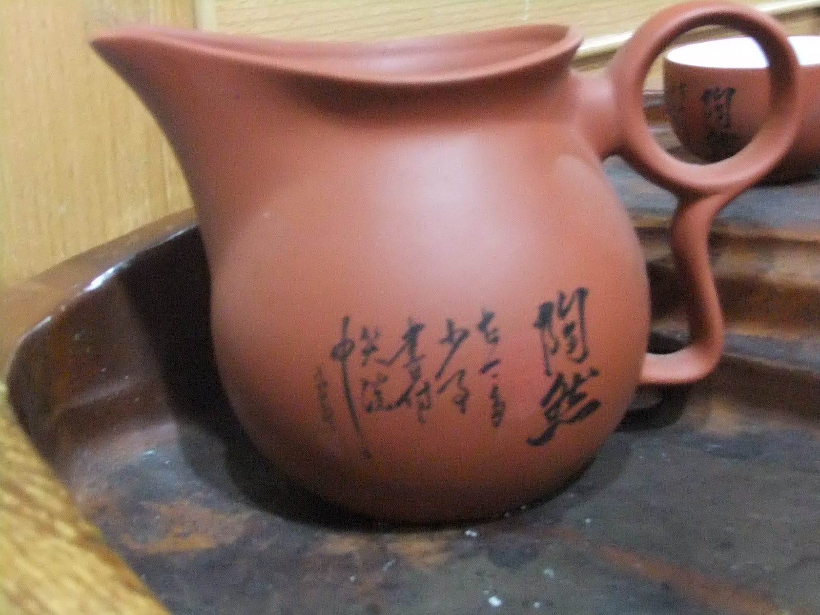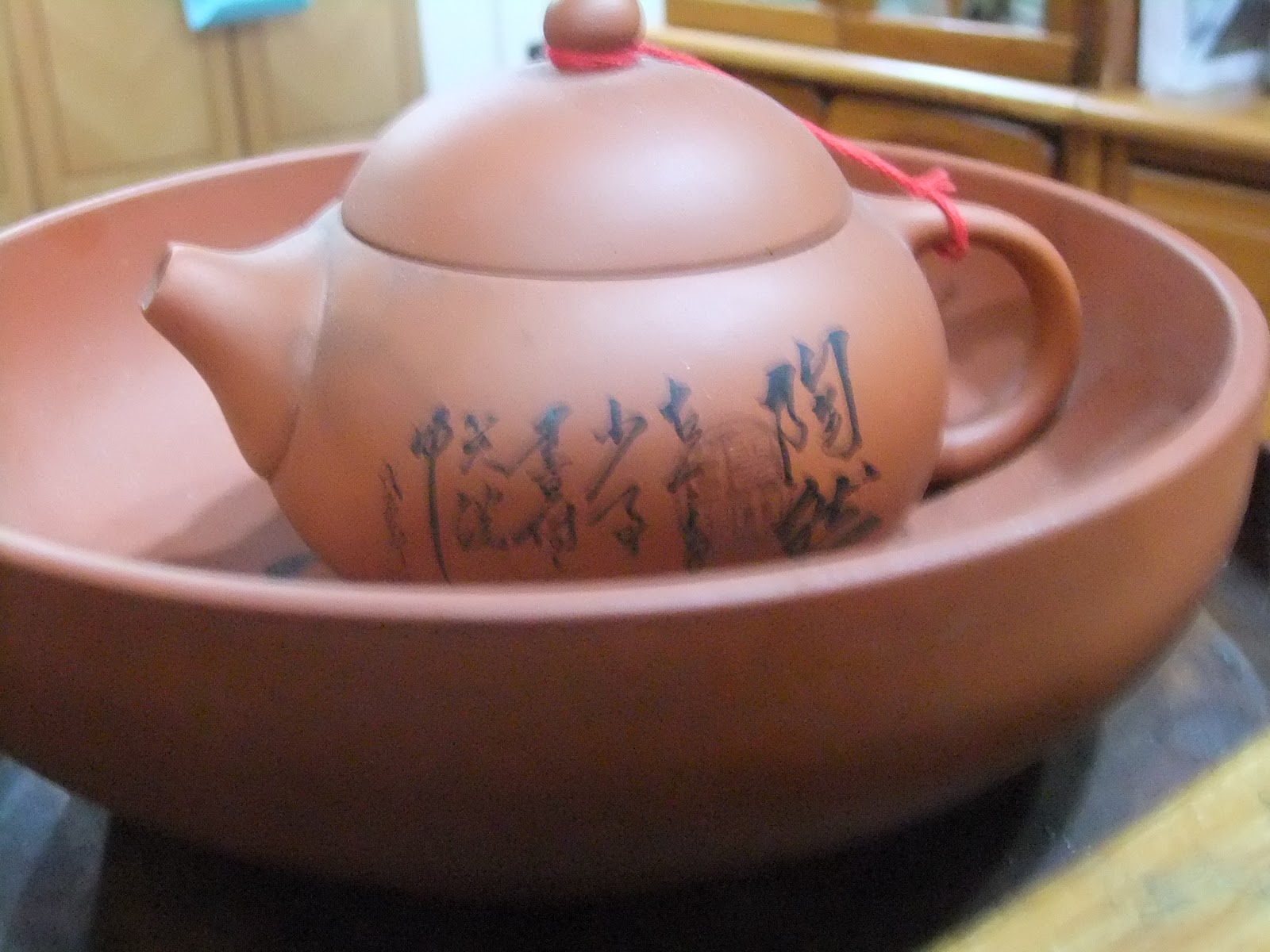 There is a whole ritual and tradition that goes with drinking tea in Taiwan and so I have learned to brew and serve tea Taiwan style. I purchased a tea table that is made from a large stump of a tree. The table is hollowed out and has a drain in the bottom to drain water from the brewing process. There are a number of varieties of tea tables, some are modern functional stainless steel, while others are made from stones or wood like mine. The wooden and stone ones are much more traditional as they mix function with beauty, which is part of the Chinese mindset.
