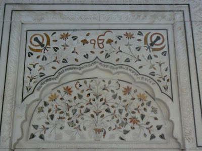 The tomb exemplifies Sikh architecture, it is gilded fluted domes and cupolas and an ornate balustrade round the top. Ranjit Singh’s ashes are contained in a marble urn in the shape of a lotus, sheltered under a marble pavilion inlaid with pietra dura, in the centre of the tomb.